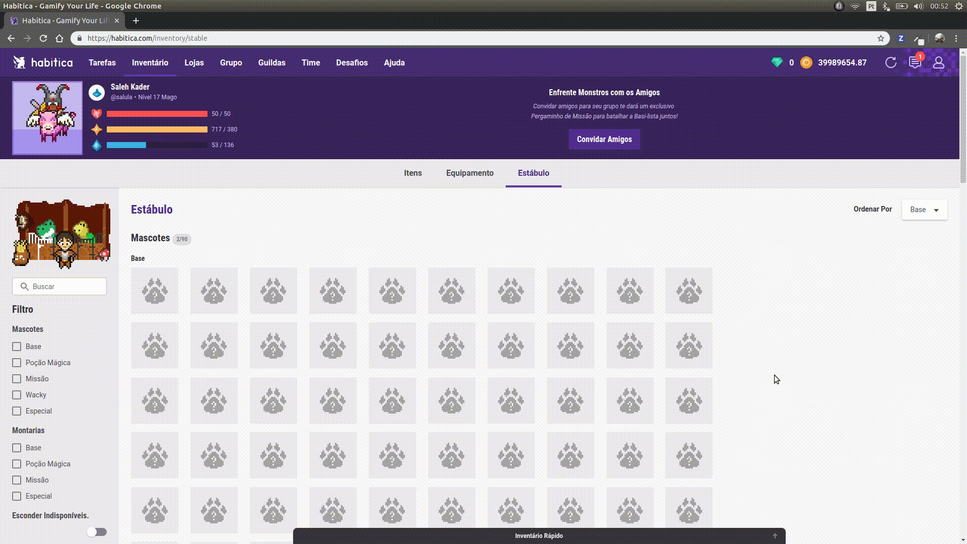 Eu, como usuário do sistema, gostaria de ser capaz de colocar e retirar os mascotes junto ao meu avatar.