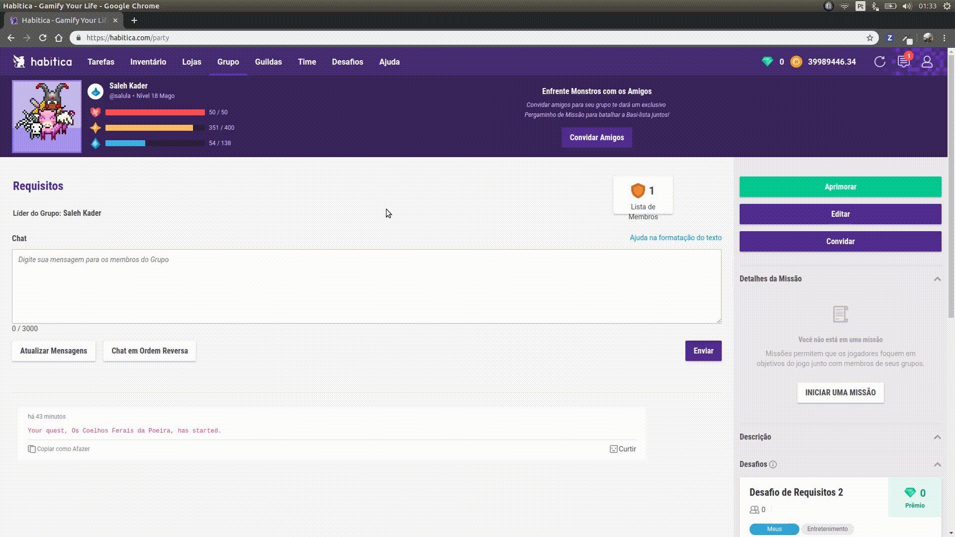 O usuário deve ser capaz de ter acesso a um botão que possibilite a saída dele do grupo atual