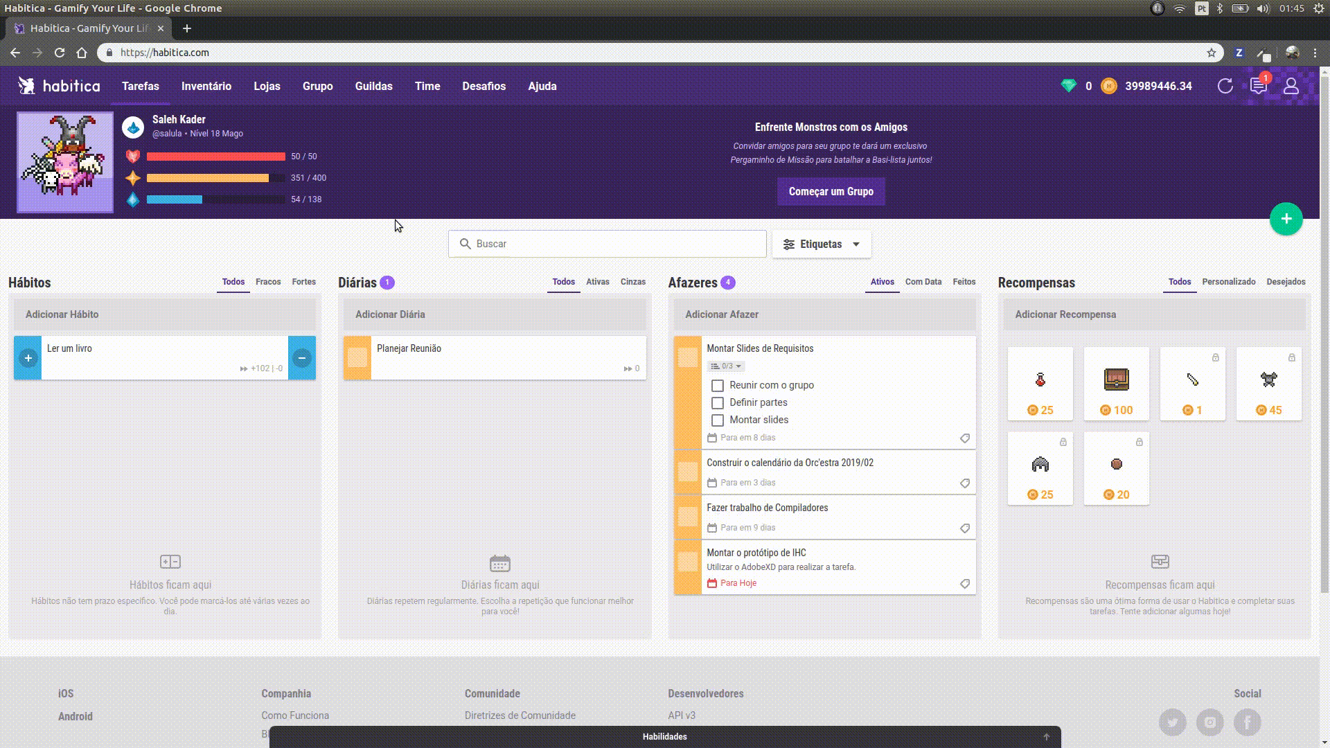 Eu, como usuário do sistema, desejo criar um grupo para chamar meus amigos.